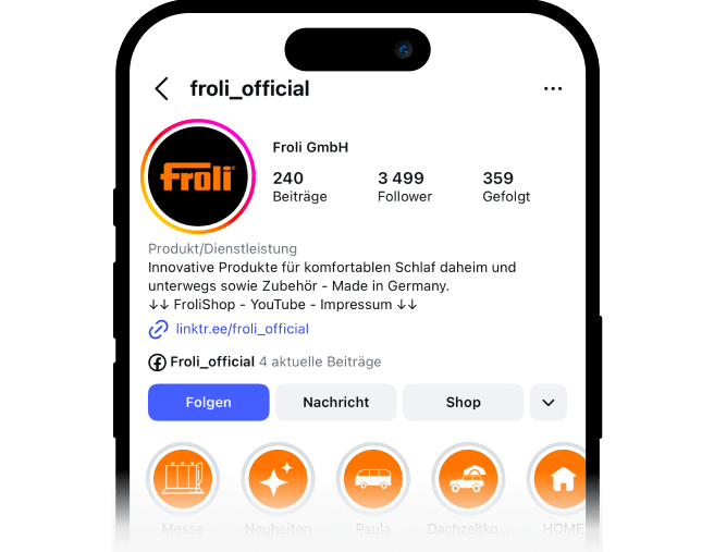 Bleiben Sie mit Froli in Verbindung und erhalten Sie Einblicke in unsere Produkte, Innovationen und Projekte. In unseren sozialen Netzwerken informieren wir regelmäßig über Neuheiten, Entwicklungen und Einblicke hinter die Kulissen – transparent, authentisch und nah an unseren Partnern und Kunden.