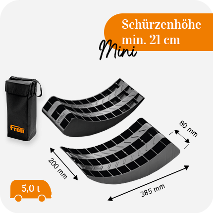 - Einfaches stufenloses Auffahren (bis max. 8 cm) und optimale Schonung der Reifen.
