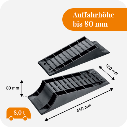 - stufenloses Auffahren bis zur Gesamthöhe von ca. 80 mm