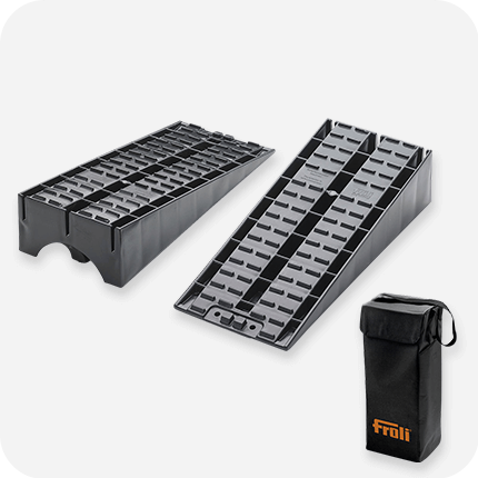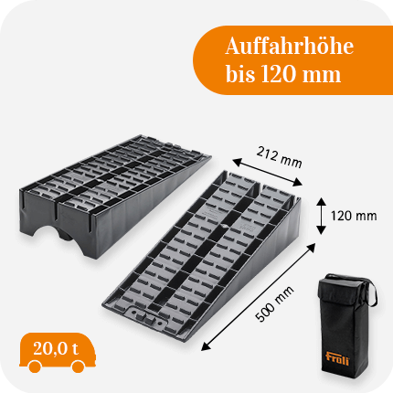 Der Maxi-Keil sorgt für optimalen Höhenausgleich bei Steigungen und unebenen Standflächen. Für Zwillingsreifen geeignet.