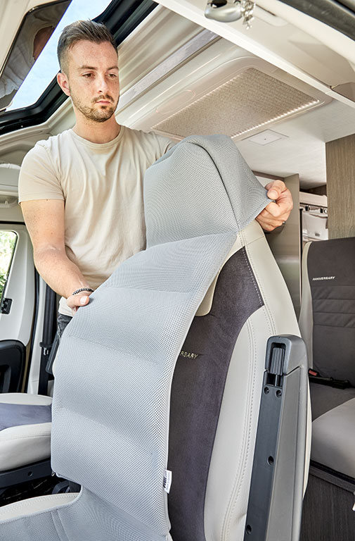 Komfort-Rückenpolster mit Federkern – Perfekte Belüftung und ergonomisches, dynamisches Sitzen im Fiat Ducato.